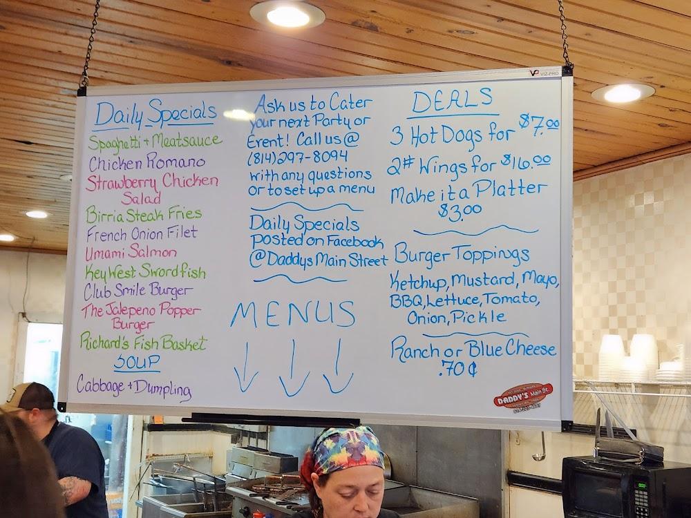 Welcome to Daddy's Main Street Hot Dog, your go-to spot for delicious, locally-inspired cuisine in the heart of Clarion, PA. Experience a relaxed atmosphere perfect for solo diners, students, and tourists alike. Our menu features classic hot dogs, mouthwatering fries, and unique dishes like jambalaya and pierogi, all at affordable prices. Enjoy dining in, takeout, or delivery options to suit your schedule. With wheelchair accessibility and a welcoming vibe, Daddy's is a family-friendly destination that values community. Stop by for lunch or dinner and savor the taste of home-cooked goodness at 513 Main St!
